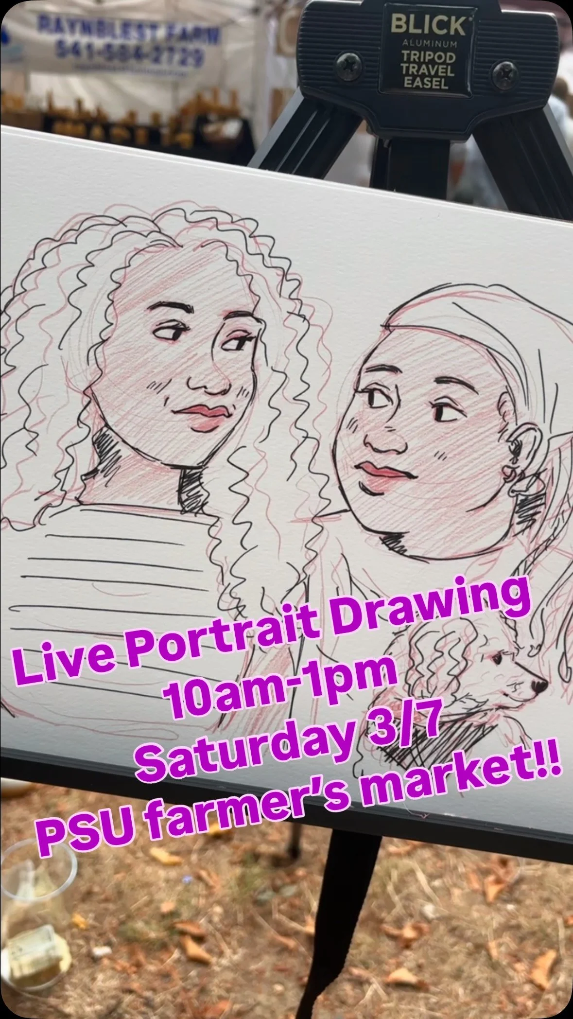 Follow my instagram to see when I’ll be popping up at markets. Contact me to hire me for your event or my other art services!